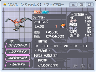 ゴツメを持っているためガルーラに対してくり出すと強い。どくどく無効、はねやすめにより半端な耐久ポケなら剣舞して上から殴れる。
