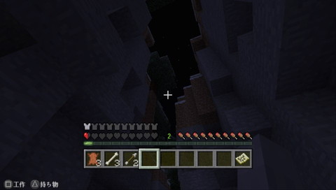 気を取り直して、リスポ地点の近くの洞窟を探索。スケスポを発見。暗くて良く分からないけどね。しかし湧き潰しも出来ないし防具も武器も無いのでしばらくスルーかな。