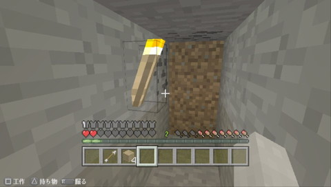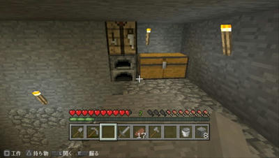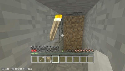 廃坑からたいまつ1つ木材4つをパクって・・・
