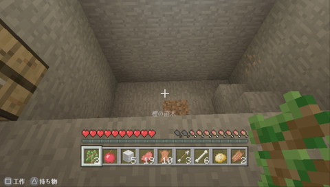 苗木を植える場所を作っていたら途中で餓死したので、村のチェストからいろいろとアイテムを持ってきた。ちなみに村のチェストに苗木を3つ残してきた。