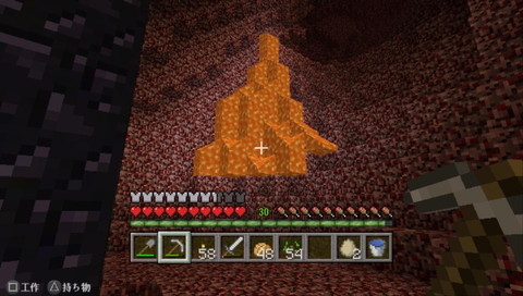 特にモンスターが湧いてないので楽々ネザー水晶ゲット。暗黒石英()