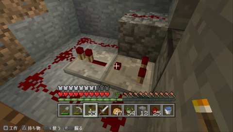 鉄も余ってきたので、鶏の自動処理装置を作り始める。しかし途中でコンパレーターが必要な事に気が付く。