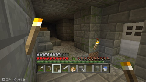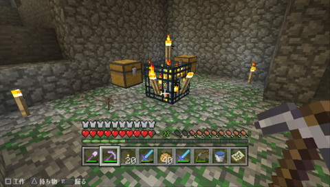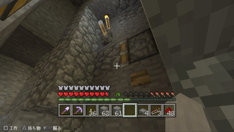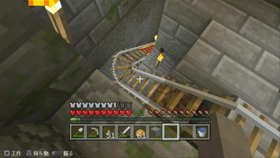 今回発見したスケスポでスケルトントラップ作ったよ。スケルトンは他と違ってあまりうるさくないしトラップが簡単に作れるから好き。矢も集まるしね。ちなみにここまでの通路に廃坑産のレールを敷いておいた。それにしてもガラスが無いと不便だね。